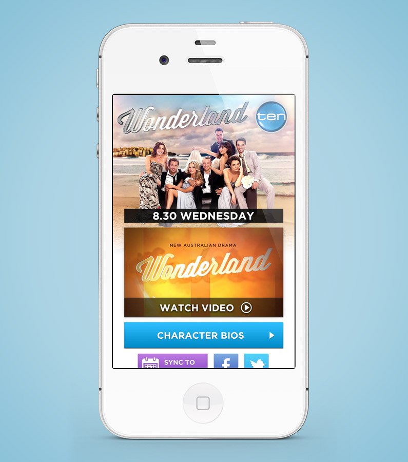 I built this landing page at Mobile Embrace for Channel 10. The site included a sync to calendar function to set a reminder for the premiere and subsequent shows.